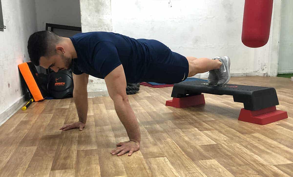 כאשר נשים את הרגליים על ספסל או חפץ גבוה כלשהו, נעמיס משקל רב יותר על השרירים המבצעים את הפעולה ובנוסף נוכל לעבוד בצורה ממוקדת יותר על שרירי החזה העליון.