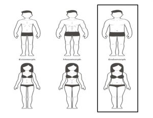 בודי טייפ של אנדומורפים – הם אלה שמתלוננים כל הזמן שהם רק חושבים על אוכל ומעלים 10 קילו, בדרך כלל יהיה להם מבנה עגול ואגן רחב, פנים עגלגלות ועצמות כבדות.