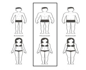 מקובל לחלק את טיפוסי הגוף של בני האדם לשלושה סוגים עיקריים: אנדומורף (Endomorph), אקטומורף (Ectomorph) ומזומורף (Mesomorph).​