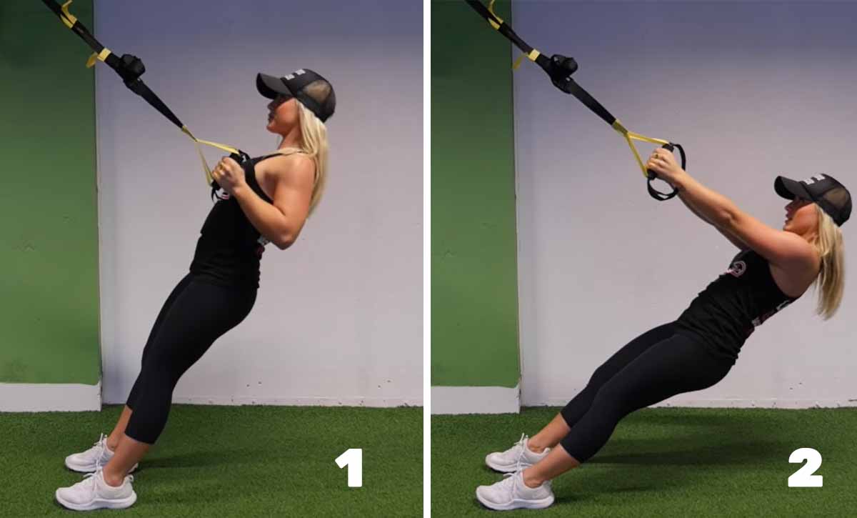 2. הרחקת זרועות עם TRX מגבת גומייה: 3 סטים, 10 חזרות